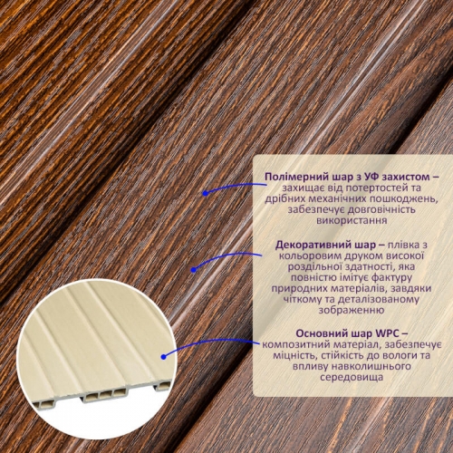 Материал: WPC (ДПК) – древесно-полимерный композит.