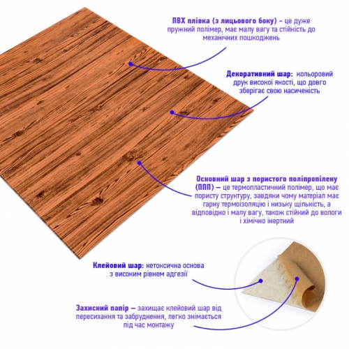 В качестве материала производители воспользовались вспененным полипропиленом, а защитным слоем служит ПВХ. Полимер имеет пористую структуру, что позволяет ему удерживать тепло, поглощать звуки, гасить вибрации. При этом всем он остается легким и простым в использовании. Сама же структура самоклеющейся декоративной 3D панели закрытая, а значит, имеет гидроизоляционные свойства.
