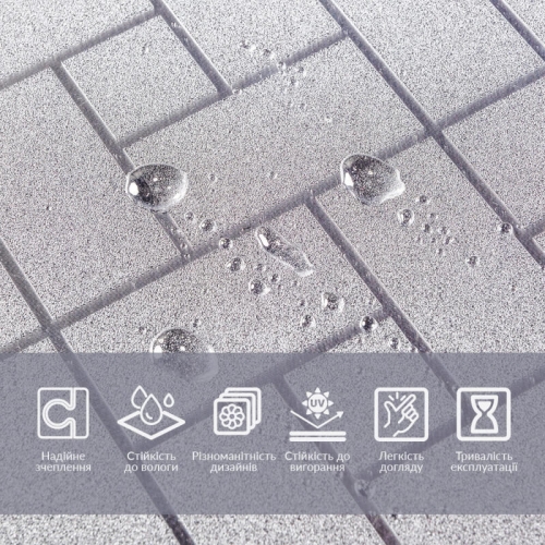 - Тип крепления: без клея, на воде (статическое сцепление)