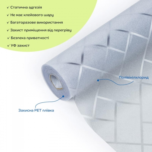 Оконная самоклеящаяся ПВХ-плёнка — идеальное решение для создания приватности, декоративного эффекта и защиты от ультрафиолетового излучения. Прозрачная структура с призматической текстурой обеспечивает мягкое рассеивание света и элегантный внешний вид.