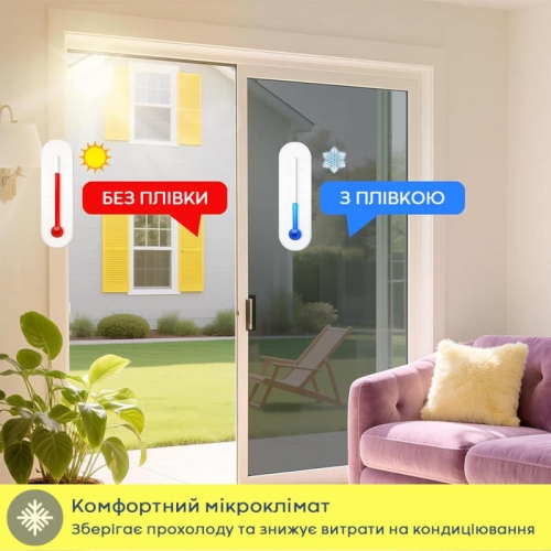 Плёнка пропускает достаточное количество естественного света, не затемняя комнату, и одновременно снижает яркость солнечных лучей и блики.
