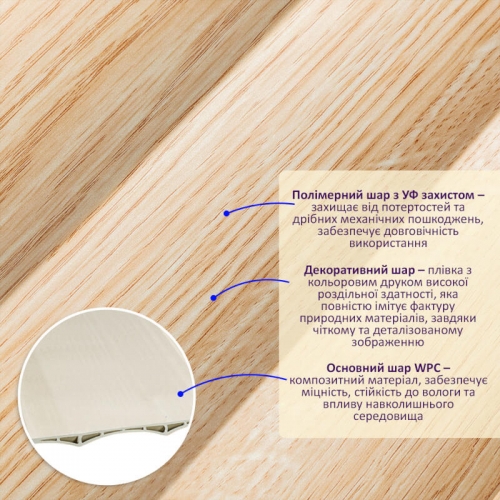 Фактура: Гладка. Імітація дерев'яної рейки.