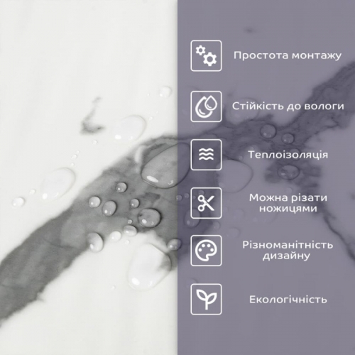• 2. Стійкість до вологи: матеріал стійкий до впливу вологи та пари, а також до появи плісняви, що робить його придатним для використання у приміщеннях з високою вологістю, таких як ванни та кухні. Плитка підходить для створення фартуха кухні, можна клеїти біля плити на відстані не менше ніж 20-25 см;