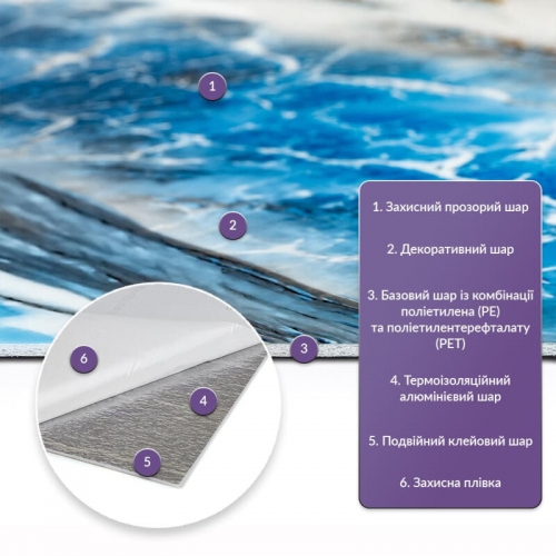 - 3. Ізоляція: плитка має звукову та теплоізоляцію завдяки наявності повітряних прошарків та додатковому алюмінієвому шару;
